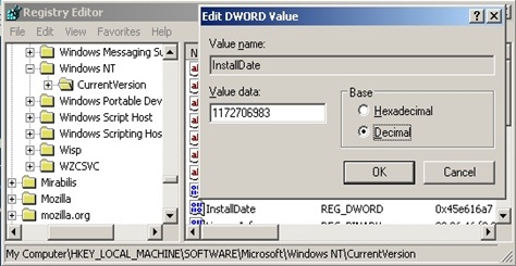 Yesterday, I had to query some computers for the date/time the OS was installed. I remembered that there is a registry key for that so I checked the registry under: