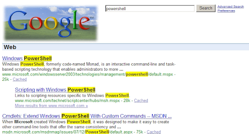 Here's how it looks when searching for PowerShell.